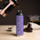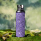 Witchy water bottle with a pattern in purple with potions, chemistry flasks, suns, moons and weird eyes. This fun esoteric design is great as a Halloween accessory for a pagan girl.