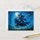 Witch riding a goat through moonlit forest holiday postcard