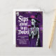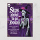 Add a touch of spooky glamour to your Halloween bash with this elegant invitation featuring a skeleton witch holding a glass of wine. The rich purple background, gothic roses, and vintage lettering make it perfect for costume parties, haunted soirées, and Halloween cocktail nights. A striking design that sets the mood for a night of eerie fun.