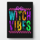 Witch Vibes Halloween Neon Checkered Bow Plaque