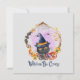 This fun and festive Halloween greeting card features a sassy black cat in a witch hat, framed by glowing jack-o’-lanterns and an intricate spider web, with the cheeky phrase “Witches Be Crazy.” Combining spooky charm with a touch of humour, this design is perfect for those who love witchy aesthetics, Halloween humour, and a bold feline attitude.