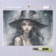 Explore the enchanting world of decoupage with this crafting project featuring a woman witch adorned in a black hat and long black hair, rendered in delicate watercolors. Perfect for Halloween or enhancing furniture restyling, this piece captures the mystical allure of Gothic aesthetics