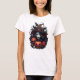 Dive into the dark and captivating world of horror with this striking t-shirt. On the front, a detailed witch's skull, with piercing eyes and sinister decorations, dominates the pattern. The witch seems to defy the laws of life and death, while scary pumpkins, adorned with fangs and threatening glow, stand beside her. The contrast between the macabre skull and the demonic pumpkin creates an intense visual effect, perfect for fans of chills and gothic aesthetics.