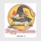Halloween themed decal has a watercolor decorated witch's hat on a spell book illustration with customizable "Happy Halloween" text