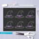 Destei's cartoon illustration of a witch's hat with purple details. The design is repeating six times creating a small pattern. The background colour is black, but it can be changed to any other colour, if so wished.