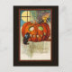 vintage Halloween art featuring fairies, a black cat and a pumpkin.