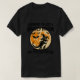 A cute bearded dragon dressed as a witch rides a broomstick in front of a glowing orange moon, surrounded by flying bats in this fun Halloween design.