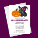 Invitation vos invités dans le style éffrayant-mignon avec cette invitation de fête d’Halloween Chat Witchy, avec un adorable chat noir portant un casquette de sorcière assis à côté d’une lanterne de jack-o’lanterne brillante. Conçue avec des lignes épurées et une esthétique moderne, cette invitation mélange le charme d'Halloween avec une élégance simple, parfait pour toute célébration d'automne. Que vous soyez l'hôte d'une soirée costumée, d'une soirée de sculpture citrouille ou d'une fête d'Halloween festive, cet invitation personnalisable donne le ton parfait pour votre événement.