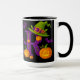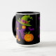 Sip your potion in spooky style! This bewitching Halloween mug features a swirling purple “R” draped in spiderwebs, glowing jack-o’-lanterns, fluttering bats, and topped with a wicked green witch hat. Perfect for coffee, tea, or hot cider, it’s more than a mug—it’s a cauldron of cozy vibes. Whether you’re starting your morning with a little magic or winding down under the autumn moon, this enchanting cup is the ultimate Halloween must-have for your kitchen—or your coven!
