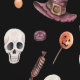 Witchy Jack O Lantern Halloween Pattern on Black Wallpaper
