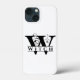 Witch monogram phone case with swirly scrolls, in black and white monochrome colour.