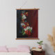 The polyester fabric displayed many wrinkles and several sharp creases throughout. At the bottom of the tapestry, I noticed a bulge in the fabric because it was not pulled tight enough before being connected to the wooden boards. It took me over an hour to spay water on the tapestry before putting it on an ironing board where I used a warm iron over a polyester cloth to remove the wrinkles and creases in the material. I was able to get out the wrinkles and creases that made that tapestry look as beautiful as its picture.