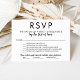 Modern wedding RSVP cards feature custom text that can be personalized for your specific needs. This version includes the reply due date, unique and creative "with bells on" wording, and plated dinner options for guests to choose from.