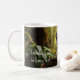 The centerpiece of this mug's design is a realistic portrayal of a French Bulldog puppy, adding a touch of whimsy and warmth to the scene. The puppy is depicted in a playful and endearing pose, its expressive eyes filled with curiosity as it navigates through the vibrant jungle foliage. Its short, velvety fur is meticulously detailed, capturing the essence of this beloved breed.