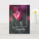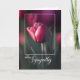 Beautiful tulip in shades of light red or pink hues is set off with a simply white line and soft focus background on this heartfelt sympathy card.