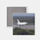 With drag chute unfurled, space shuttle Discovery lands on Runway 33 at the Shuttle Landing Facility at Kennedy Space Centre in Florida featured with Cape Canaveral.