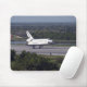 With drag chute unfurled, space shuttle Discovery lands on Runway 33 at the Shuttle Landing Facility at Kennedy Space Centre in Florida featured with Cape Canaveral.