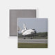 With drag chute unfurled, space shuttle Discovery lands on Runway 33 at the Shuttle Landing Facility at Kennedy Space Centre in Florida featured with Cape Canaveral.