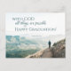 Inspirational scripture Christian graduation postcard depicts a person walking on a nature path overlooking a beautiful mountain valley. It features Bible Verse Matthew 19:26, "With God all things are possible." The back greeting can be personalized.