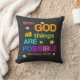With God all things are Possible Bible Verse Design Matthew 19-26 Colourful rainbow colours Christian design. Bible Verse Pillows.