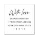 Elegant return address rubber stamp featuring the text "with love" in an elegant script font. Below is your name and return address.