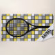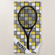 Customizable Beach Towels. Black, white, grey and yellow checks and black tennis racket with customizable name. Perfect as a Christmas gift. Great as a gift for any occasion, too. Beach Towels for tennis players