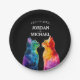 Celebrate love in full colour with this striking paper plate from the "Purrfectly Yours: A Rainbow Love Collection." Designed to honour joyful unions and unforgettable celebrations, this round plate features a bold black background that highlights the centerpiece — two watercolor rainbow cats lovingly gazing into each other’s eyes. The vivid blues, purples, reds, oranges, and yellows of the feline pair radiate warmth, connection, and pride.