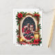 A festive postcard framed in golden holiday charm—poinsettias, holly, berries, and glowing candles surround a customizable oval photo. Snowflakes fall over cozy smiles, while “Merry Christmas” script adds warmth. Personalize front and back with heartfelt holiday messages.