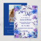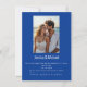 Flipping to the back, a plain blue background provides a perfect canvas, allowing a striking photo of the couple to take centre stage at the top. Below this heartfelt image, a space is dedicated for customizable text, allowing for personal touches or additional information to be added. Whether it's a heartfelt message or details about the formal invitation, this area ensures that your guests are not only informed but also feel connected to the celebration. At the bottom, an extra line offers flexibility for any supplementary details, ensuring your guests are fully prepared and eagerly anticipating the joyous occasion ahead.