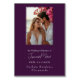 Now, turning to the back of the card, against a luxurious dark plum background, a personalized touch awaits. At the top, a cherished photo of the couple graces the card, adding a heartfelt and intimate element to the design. Below the photo, a caption reads "Wedding Celebration of" followed by the couple's names, wedding date, and location, beautifully displayed in elegant typography.