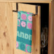 With text kitchen towel with pickleball pattern, awesome trendy colours: pink and minty. Match it with other items with this colour scheme.