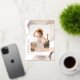 Simple and modern photo graduation announcement features a vertical photo on a background of neutral colour watercolor shapes and abstract splotches with rose gold foil accents. "Graduate" runs up the left side, with your grad's name, school, and class year beneath. Add a personal message to the back, along with an additional photo.