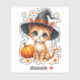 Get into the spooky spirit with this cute Halloween sticker featuring an orange kitten in a witch hat sitting next to a pumpkin. This high-quality sticker is perfect for decorating laptops, water bottles, planners, or any space needing a touch of Halloween charm. Great for cat lovers and those who enjoy adorable seasonal designs!