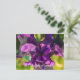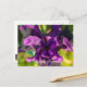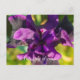 Thinking of you postcard featuring a photo looking inside a dark purple iris.