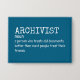 This witty archivist definition button makes a hilarious office gift for coworkers, librarians, and historians. A fun way to celebrate archivist pride and document preservation humour. Perfect for archivist appreciation gifts.