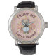 Arrived today. Beautiful watch just like it appears on the website! Printing is exactly as the template I created and asked for.