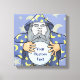 Old wizard with blue cape and crystal magic ball. Use face photo to customize. Custom text.