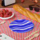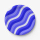 Wobbly Pop Stripes Bright Blue Diagonal Pattern Paper Plate
