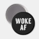 I'm Woke AF political resist gift for a person who stays current in political affairs and goes to marches to protest and fight for equal rights, healthcare, and sensible gun laws. The white text on a black magnet makes a bold statement.