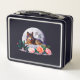 This is a standard metal lunchbox that appears to work just fine. We designed this box ourselves with an uploaded photo and custom text on the front and back. It looks absolutely beautiful except the front of the lunchbox is not centered like it shows in the photo. The print borders don't align with the inset flat part of the box where the preview photo online showed it perfectly centered in there. The back looks nice and centered though.