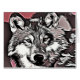 Graphic portrait of a grey wolf with pink and purple colour