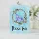 Un mini-carte de remerciements avec une illustration graphique composée d'un loup d'aquarelle violet, dans une pose de hurlement classique. Entourée d'une couronne illustrée de bois, cristaux, plumes et perles. Motif américain cool avec un style boho. Merci écrit dans une police manuscrite tendance.