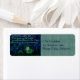 Le loup à l'intérieur d'une bulle de lumière traverse une forêt sombre de verts et de bleus. Le texte dit : "La beauté des bois verts me conduit vers les bosquets qui brillent à l'intérieur."