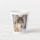 Close-up of a wolf head in a winter forest. A cute friendly almost smiling face. An animal with the fur in black, white and brown. Personalize and add your monogram initials and name. Golden and black block letters.
