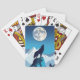 Playing Cards in a black silhouette of a wolf, howling at a large full moon, standing on a mountain peak with, ice covered mountains in the background