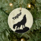 Wolf Howling at the Moon Illustration Personalized Ceramic Ornament