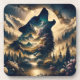 Wolf Howling at the Moon on a Cloudy Night Coaster