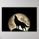 Wolf Howling Full Moon Night Vintage Sepia Poster