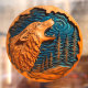 Wolf Howling Moon Faux Wood Carving Wild Nature 2 Window Cling