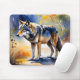 Wolf in a forest watercolor painting mouse pad
